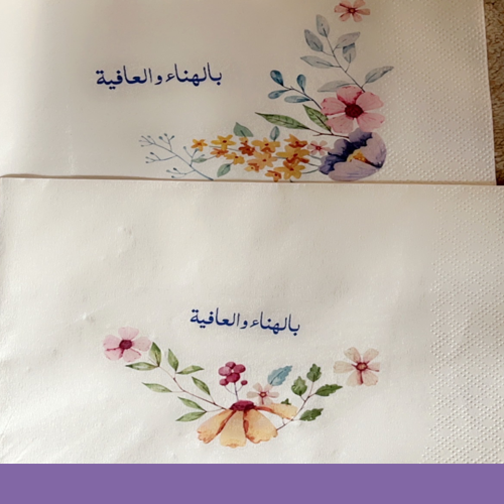 أضف لمسة من الفخامة والتميز إلى مائدتك مع مناديل سفرة الطعام بطباعة مخصصة. اطلبها الآن من متجرنا WAFSTORE بسعر الدرزن 10 ريال وميّز مناسبتك بتصميم فريد يعبّر عن ذوقك.